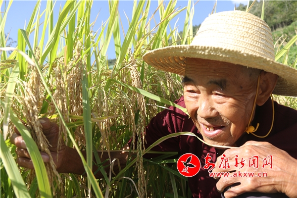 “稻花香里說豐年”。桂花村2組許道生老人,今年雖已87歲高齡,卻精神矍鑠,常年為了家里 “一畝三分地”而辛勤勞作。78歲的老伴很是心疼,在照顧他生活起居的同時,還關顧著孫子,膝下一兒兩女都忙各自的事,生活也很充實。面對豐收,老人喜不自禁,自述他種的兩畝水田保守估產將達3000多斤,用他的話說:“這可是我們嵐皋最好的米,過去還是貢米吶。”