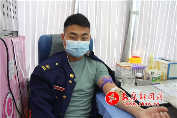 緊隨王洋其后獻血的張林,去年四月剛剛入營,他告訴工作人員,自己一直想獻血,雖然這是第一次,但他對無償獻血還是比較了解,覺得很有意義。現在是防控疫情的關鍵時期,他作為一名黨員,一名消防員,不能去一線執勤任務,通過無償獻血這種方式來貢獻自己的一份力量,也感到很光榮。