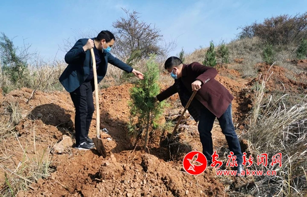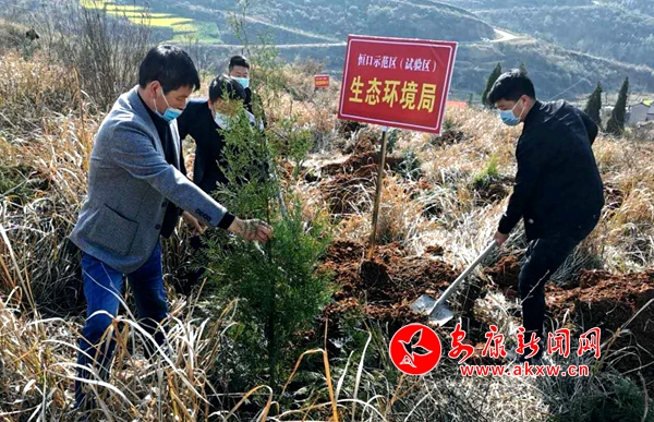 3月12日是我國第42個植樹節,安康市恒口示范區(試驗區)組織機關部門黨員、干部和月壩村村民在采取疫情防控措施的基礎上,來到越嶺關參加義務植樹活動。植樹現場,大家相互協作,揮鍬挖坑、扶正樹苗、填土夯苗、提桶澆水,按植樹技術要求,共完成100多畝的柏樹栽植任務。(通訊員 唐志丹 攝)