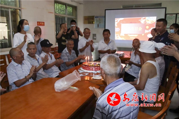 活動現場,他們為老人們送去牛奶、礦泉水、牙膏等生活用品,宣講防疫小知識,并為11位老人集體慶生,為他們精心準備了生日蛋糕和禮品。老人們圍桌而坐,一起唱生日歌,現場其樂融融。