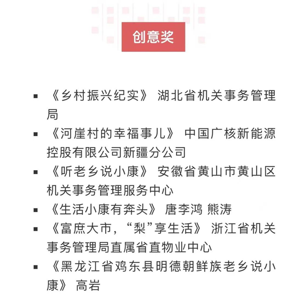 其中,恒口示范區選送作品《生活小康有奔頭》(作者·唐李鴻、熊濤)榮獲創意獎,其風格親切,制作精良,感染力和觀賞性強。作品從獨特老鄉視角,讓老鄉當主角,面對鏡頭講述自己用勞動創造幸福生活的故事。同時,生動展示我們黨帶領全國各族人民打贏脫貧攻堅戰,全面建成小康社會的偉大歷史成就。?