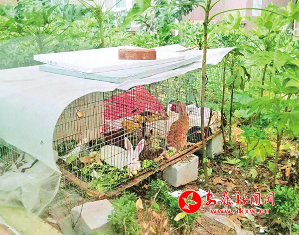 6月23日,安康中心城區城投西津城小區多處公共綠化帶被占用栽種蔬菜和圈養兔子,給小區衛生環境和居民生活帶來了不良影響。(記者 羅偉 攝)