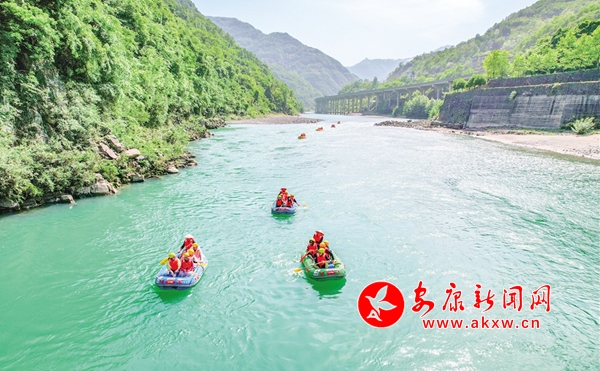 “五一”期間,紫陽縣在任河漂流景區啟動2023年“夏親水”系列文旅活動。儲茂銀 攝