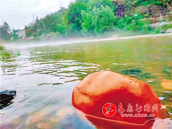 富家河以盛產(chǎn)黃蠟石而聞名,溯溪而上,積水成潭,故有了黃石灘之說。辛丑仲夏,駐村工作的使然,便和黃石灘有了初次接觸。多雨的季節(jié),多霧的節(jié)奏,雨止霧起,氤氳云煙,漲水淹沒了過水橋,半拱在潺潺溪水中只剩下一星點月牙兒,微風吹來,蕩起一串串漣漪,擴散到岸邊,紫信吐芳、綠竹搖曳、蝴蝶飛舞、蟬羽嘀鳴,散落在泥土中,黃蠟石顯得特別突兀……水域絕色,宛如仙境一般。