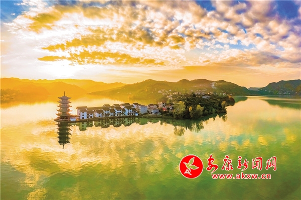 在瀛湖,冬日里的暖陽往往午后才露出羞澀的笑臉。聽說清泉老碼頭新打造了一座古香古色的小鎮,與四周的群山和這里的大湖面渾然一體,美麗壯觀。11月下旬的一個下午,待云霧慢慢散開,我和紀平、世軍驅車來到清泉老碼頭。過去,這個碼頭是跨漢江通往玉嵐的必經之地,也是嵐河與漢江的交匯處。火石巖電站大壩蓄水后,這里呈現出瀛湖最開闊的湖面,螺峰島、翠屏島、玉興島、五龍山等形成了四面環水的島嶼,清泉、玉嵐、橋興、關埡子、紅巖堡、南溪溝、任家灣等地縱橫交錯,形成了諸多形態各異的半島。水位升至最高時,“腰帶”消失,山與水渾然一體,與綿延的山勢溫柔相依。此時山頭已是草木蕭疏,只剩下光禿禿的樹枝了,而瀛湖兩岸卻秋意正濃,山坡上的紅黃綠像是被打碎了的調色盤,洋洋灑灑,帶著幾分溫潤嵌入山坡、映入湖中,在藍天白云的映襯下,宛如一個童話世界。忽然,一艘游船駛過,五彩斑斕的倒影頃刻被攪拌成彩色綢緞,任其在湖中翻滾飄蕩。夕陽劃過山頭的那一刻,紅霞漫天,湖面被染成橘色之后,一片寂靜。只有此時,山之沉穩端莊和水之嫵媚溫柔交融一體,呈現出無與倫比的美。我想,這不正是我想要的那幅極具詩情畫意的場景嗎?有感:
