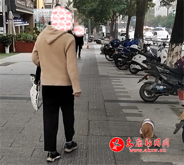 11月8日下午,興安公園小廣場(chǎng)內(nèi)有市民遛狗未牽繩,寵物犬綠地隨意便溺。(圖文/周薇)