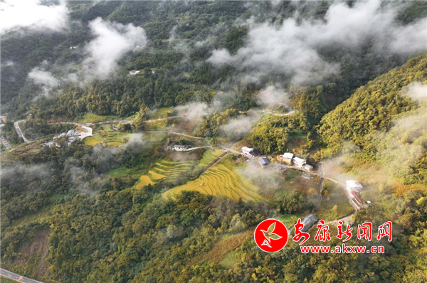 大湖溪位于鎮坪縣城關鎮友誼村,距離縣城大約半小時車程。沿207省道順南江河而下,穿過南江湖大壩就到了谷口。一條嶄新的柏油馬路沿溪流伸向大山深處,茂密的森林覆蓋著山巒,星星點點的農舍、民宿集群和土地,若隱若現地掩映在云霧繚繞的群山之間,許多保存完整的巴山古老傳統民居石板屋,炊煙裊裊,與淡淡的晨霧相互交織,構成了一幅渾然天成的水墨畫卷。放飛手中的無人機,我貪婪地捕捉這一幅幅夢幻般的景致。