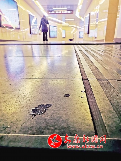 1月16日,有市民在安康城區江北大道地下通道內隨地吐痰。