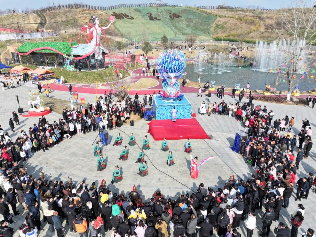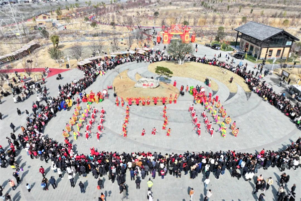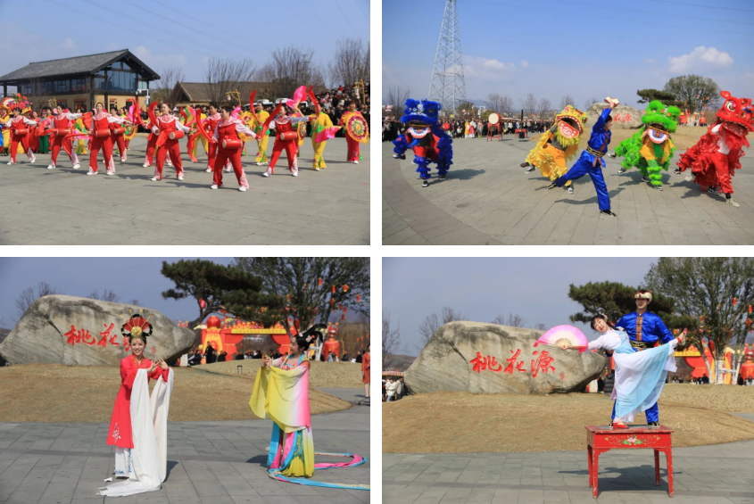 豐收大秧歌、龍騰腰鼓隊、喜慶蓮響、彩船、花轎大聯歡、社火、小場子戲等精彩的傳統民俗節目在桃花源相繼上演。新穎的編排、精彩的表演,令現場游客大飽眼福,叫好聲、喝彩聲此起彼伏。當天近25000余名市民游客前往桃花源觀看表演、打卡游園,處處洋溢著“歡歡喜喜過大年”的節日氣氛。