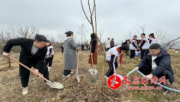 活動伊始,綠化公司的工作人員詳細地講解了植樹的要點。活動現場,大家分工協作,相互配合,放苗扶樹、揮鍬填土、踩土固苗、提水灌溉……充分發揚了團結協作、吃苦耐勞的優良作風。在大家的共同努力下,一棵棵小樹屹立在春風中,成為這個春天又一道亮麗的風景。隊員們還親手懸掛小樹牌,許下自己美好心愿。?