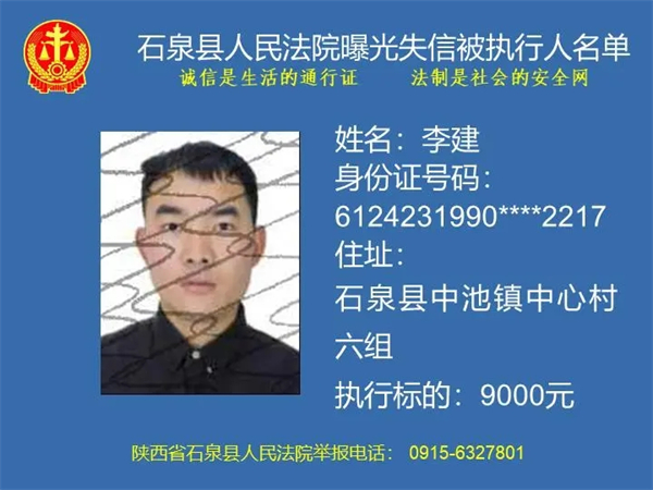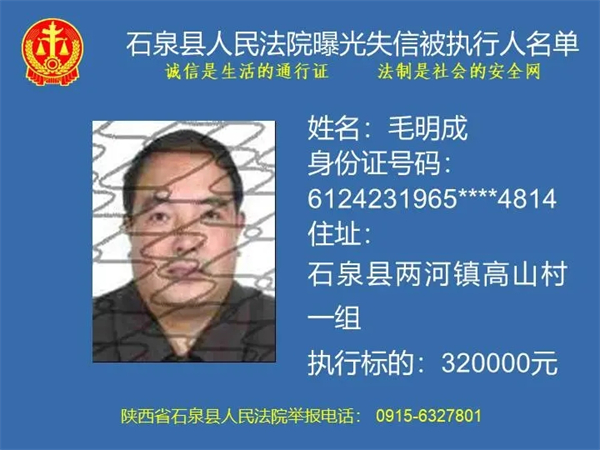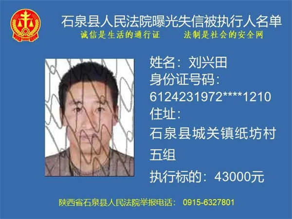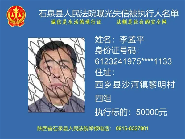曝光失信 | 石泉縣人民法院曝光失信被執行人名單(2024年第一期)