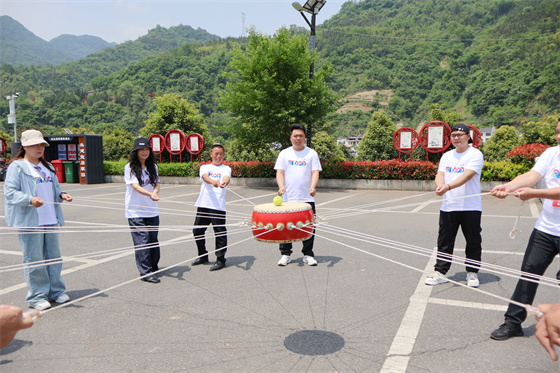 隨后,一眾獻血者乘著大巴迎著初夏的清風來到了平利縣蔣家坪村。參觀結束后,獻血者們在專業教練的帶領下開展了素質拓展訓練,大家分別組隊,繪制了精美的團隊旗幟,喊出了響亮的團隊口號……指壓板接力、擊鼓顛球、獨木橋、一圈到底、一個個趣味游戲讓場上隊員激情滿滿、歡樂無比,大家在一輪又一輪的比拼中體會到了對抗的激烈,也感受到了團結的情誼,更展現了成分血固定獻血者們“勇往直前、持之以恒、永不服輸”的堅韌精神,正如大家多年來對安康無償獻血公益事業的堅守與支持。