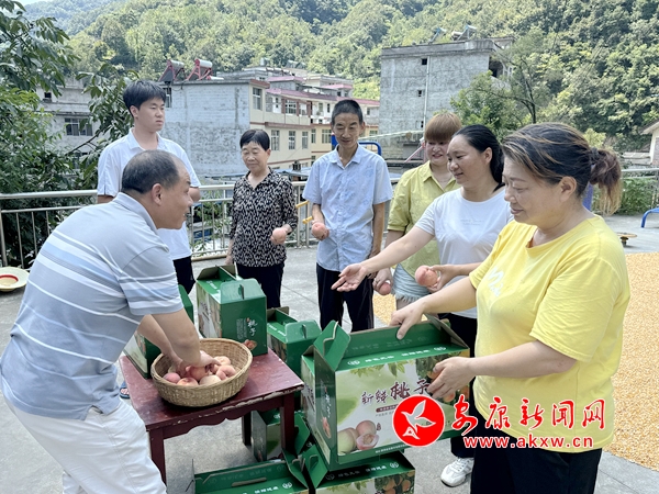 7月20日,旬陽市棕溪鎮,一場由旬陽市委組織部派駐隆家河社區第一書記吳必新發起的“鮮桃銷售行動”正在如火如荼地進行。隆家河社區的150畝果園正值水蜜桃、黃桃的豐收季,滿園的桃子個大味美、粉嫩誘人,但在連綿的陰雨天氣下,采摘和銷售遇到了難題,園區負責人劉全洲愁眉不展。