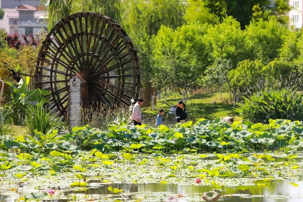 桃花源中,桃花笑春風,春意濃濃,生機盎然。市民廣場之上,歡聲笑語,編織歡樂之篇章,生活之美好與和諧,盡在此間展現。高樓拔地而起,綠樹成蔭,綠草如茵,大自然之柔軟鋪墊,為城市增添無限生機與綠意。