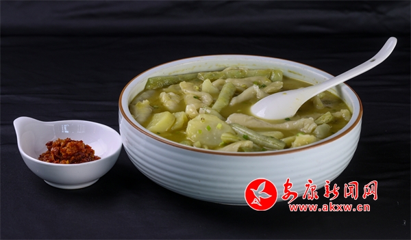 “甜酒火燒饃”,是石泉縣幾代人美食智慧的積累,傳承至今,是深受人們喜愛的小吃。它是采用古老傳統老酵面加甜酒發面,將老酵面、甜酒加入溫水后,再加入面粉一起攪拌均勻后再揉面。把面團揉制光亮后放置幾小時待其自然發酵。等到面團成發泡蜂窩狀態,才可以開始將面團做成圓形,在用搟面杖搟薄圓形面團放入柴火灶鍋中,撒上芝麻,小火炕制一面黃在翻面炕制兩面色澤金黃。吃進嘴里有小麥淡淡的清香味,也有甜酒的甜香味,回味無窮。杜光發制作的這道小吃獲得安康市2024年“安康味道”名小吃。