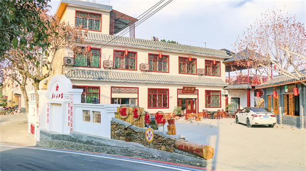 村委會對面,村民詹永斌站在院子里,樂呵呵地向前來探親的侄子們介紹起改造前后的變化。“去年這時候,我家側面還是光禿禿的水泥墻,現在政府有好政策,農房改造補貼一萬五,把家里的外墻、屋檐、屋頂全部做了美化,墻面也刷白了,看起來美觀不少。”