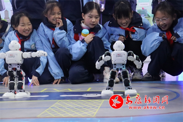 在科技館內(nèi),學(xué)生們在講解員的引導(dǎo)下,開啟了“沉浸式”科學(xué)之旅,近距離接觸機(jī)器人、VR、人工智能等前沿科技展品。智能機(jī)器人靈巧的舞蹈動作引得孩子們陣陣歡呼;VR體驗(yàn)區(qū)里,學(xué)生們戴上設(shè)備“穿越”到宇宙星空,感受科技的神奇魅力;學(xué)生們還通過參觀“節(jié)水之旅 我們在行動”等主題板塊展品,親手操作實(shí)驗(yàn)設(shè)備,感受到了科技對生活的深刻影響。走進(jìn)氣象站,學(xué)生們跟隨氣象工作人員,參觀了氣象科普長廊,閱覽二十四節(jié)氣對生產(chǎn)生活的影響。在氣象觀測場,近距離觀察風(fēng)向風(fēng)速傳感器、天氣現(xiàn)象儀器等設(shè)備。