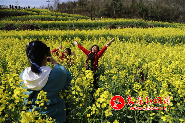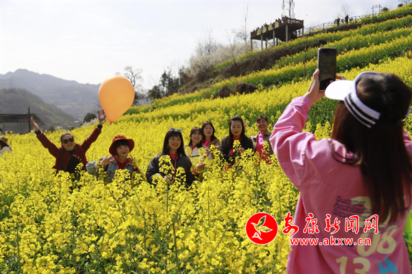 陽春三月,嵐皋縣城關鎮水田村1000畝繁茂的油菜花海,為大地迅速披上一層金色的盛裝,吸引眾多的游客紛紛前來觀光旅游,分享陽春三月、鳥語花香的鄉間美麗景色。(攝影 廖霖)?