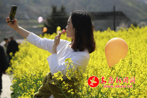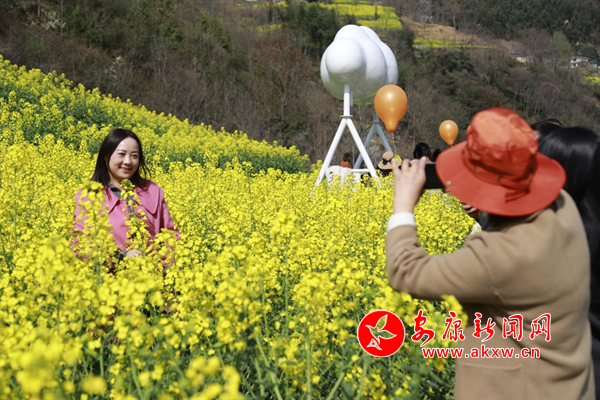 陽春三月,嵐皋縣城關鎮水田村1000畝繁茂的油菜花海,為大地迅速披上一層金色的盛裝,吸引眾多的游客紛紛前來觀光旅游,分享陽春三月、鳥語花香的鄉間美麗景色。(攝影 廖霖)?