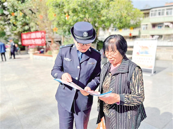 民警走進超市、公園、沿街商鋪、企事業單位等地,以國家安全等法律知識為切入點,開展宣傳教育的同時,倡導轄區群眾從我做起,自覺抵制破壞和損害國家安全的行為,積極支持維護國家安全工作。袁媛 文/圖