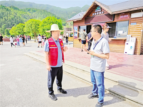 游客需要什么,黨員就做什么!今年“五一”期間,全鎮(zhèn)設立4個固定服務崗、30個流動服務點,配備2支摩托巡邏隊和200名志愿者,形成“點線面”結合的服務網絡。同時運用“智慧監(jiān)管云平臺”,整合無人機巡查、AI人流監(jiān)測等技術手段,實現(xiàn)景區(qū)客流精準調控,贏得了廣大游客的爭相稱贊。