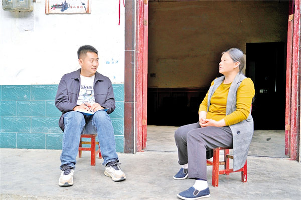 彭方睿入戶進行政策宣傳,并了解興坪村農戶收入情況