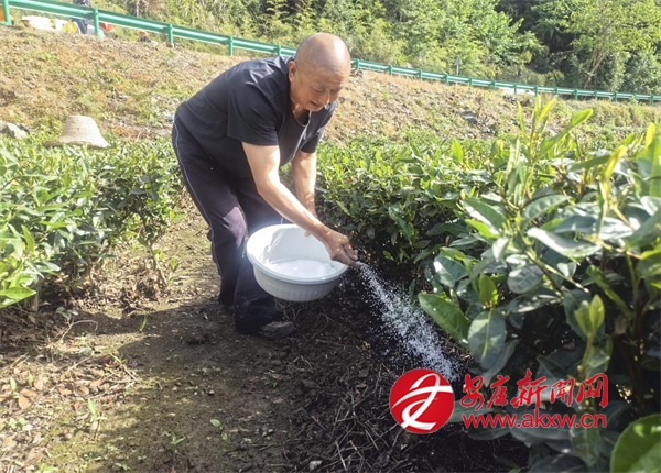 “沒想到政府直接把肥料送到茶園里了,既省時又省力,服務真是太周到了。我的2畝茶園分了70斤肥料,再過一段時間就可以機采夏秋茶了。”茶農康中強滿臉喜悅地說。說話間,康中強順手將盆里的肥料,撒進挖好的茶壟里。
