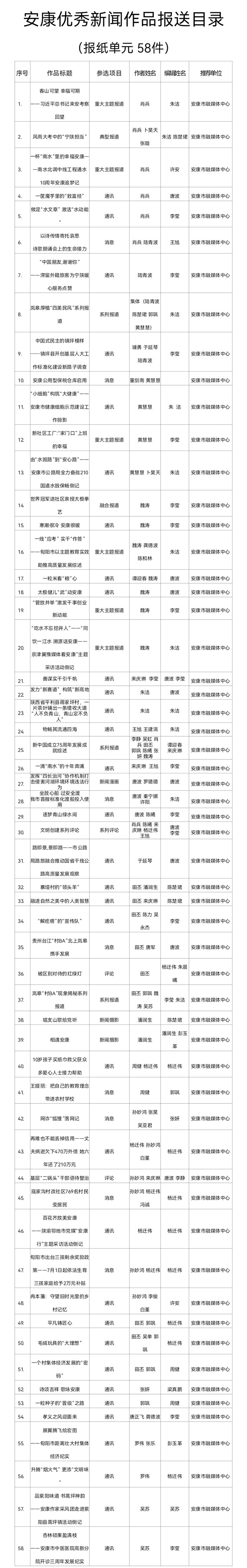 附件:安康優秀新聞作品報送目錄(共計97件)