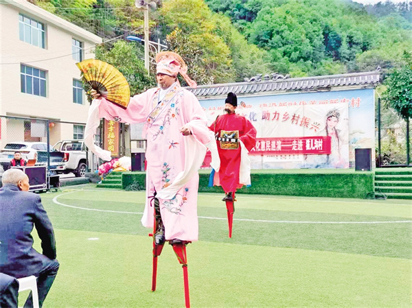 在五峰村,村支部書記羅仁春告訴記者,2023年村委會牽頭成立了五峰村文化民俗文藝協(xié)會,陸續(xù)加入的48名會員涵蓋老中青三代,既有傳承高蹺絕技的老人,也有主動學習弦子腔的年青一代。今年32歲的村民小梅加入協(xié)會后,一改往日下班后悶在家中的狀態(tài),每天下午吃完飯都會下樓和新認識的姐妹載歌載舞,很快就成為舞蹈隊的主力。“以前不知道我們村上還有文藝協(xié)會,自從村上干部告訴我后,我就趕緊加入了這個小團體,既鍛煉了身體,又愉悅了心情,生活幸福感越來越強烈。”身著舞蹈服的小梅身姿婀娜,水袖飛揚間,明媚的笑容如花一樣燦爛。