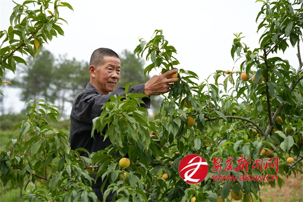 “黃桃產業作為江河村的主導產業,現有種植面積120畝,目前每天能采摘5000斤,我們的黃桃有兩茬成熟期,第一茬在每年端午前后成熟上市,第二茬黃油桃,要到每年七八月份成熟上市。”漢陰縣經貿科技局駐江河村第一書記李峰介紹說。
