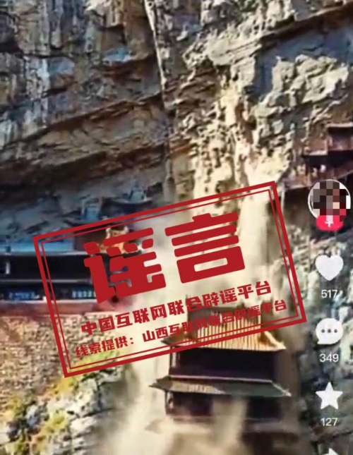 謠言:山西大同懸空寺部分建筑物坍塌?