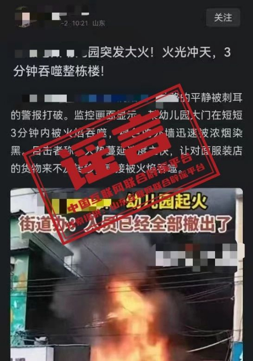 通報:一幼兒園發生大火,32名孩子被困?實為使用“AI工具”編造的謠言