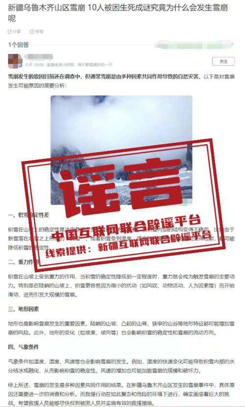 謠言:烏魯木齊山區發生雪崩,10人被困生死成謎?