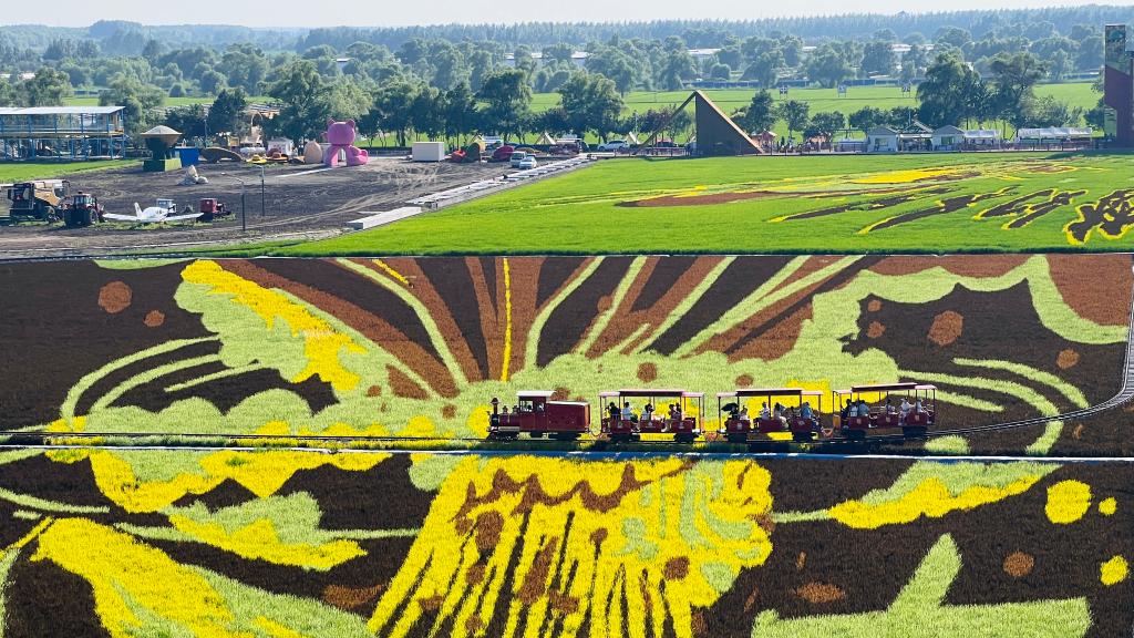 在北大荒集團閆家崗農場的“藝術稻田”里,6幅稻田畫在165畝稻田中徐徐展開——冰雪畫卷盡顯百年冰城魅力,四季生態畫卷演繹著四季浪漫;萌寵卡皮巴拉,傳遞出平靜與治愈的力量;后羿射日、女媧補天、神筆馬良這些經典神話在稻田中煥發新生,與多彩的稻浪共同演繹著中華文明的永恒魅力。100多公里外,北大荒集團四方山農場的玉米田,青紗帳漸染金黃,工作人員張昊正遙控無人機,巡航監測作物成熟度,科技與傳統在此刻共舞。