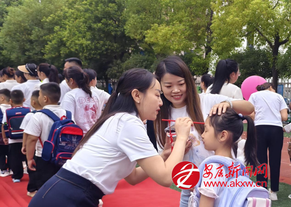 走紅毯環節將氛圍推向高潮。班主任帶領新生與家長手牽手緩緩前行,周圍的歡呼聲此起彼伏,孩子們在這份熱鬧中,真切感受到“成為小學生”的榮譽感。“摸福禮”環節巧思滿滿,8種寓意吉祥的物品整齊擺放,孩子們懷著好奇伸手觸摸,在指尖的互動中,收下滿含期許的祝福。