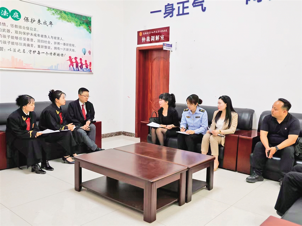 高新法庭特邀人大代表、政協委員、市場監管工作人員及科創園企業代表走進法庭,聯合開展調解工作。趙永佳 攝