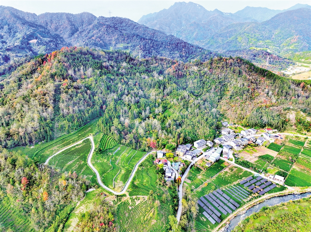 近年來,平利縣廣佛鎮通過山上建茶園、山下安裝光伏板,讓群眾共享綠色收益。吳永杰 攝