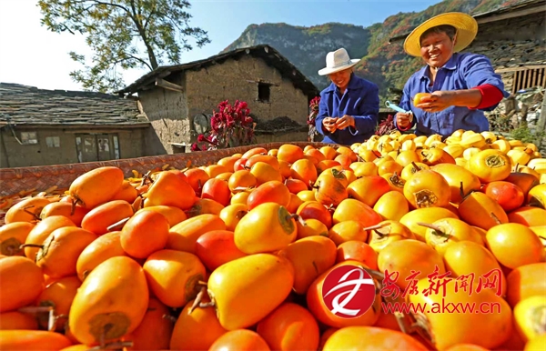 鄉(xiāng)親們趁著柿子還沒(méi)軟就采摘下來(lái),在房前屋后搭起一排排晾曬柿餅的木架,開(kāi)始每年一次的傳統(tǒng)手工勞作:去皮、懸掛、晾曬。出霜后就成了美味的柿餅。