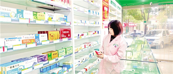 愛(ài)心聯(lián)盟藥店工作人員整理藥品
