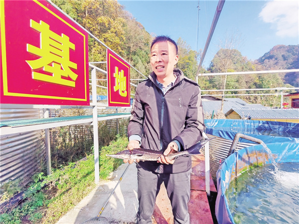 在木竹村陸基養魚基地,黨支部書記祝振攀望著池里的中華鱘喜上眉梢:“這批魚能給村集體帶來10萬元以上利潤,高峰時一天要賣400多條魚,基本上都供應給鎮上的民宿和農家樂了!今年我們村集體經濟目標是突破50萬元。”