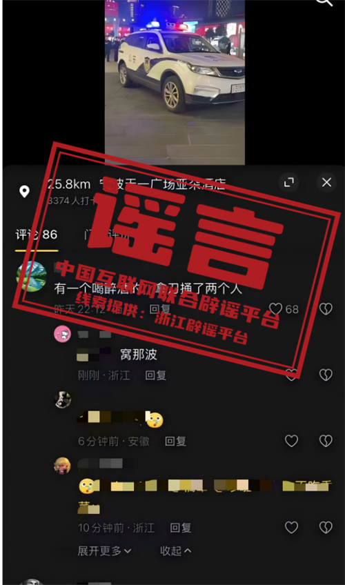 辟謠:“寧波天一廣場有醉酒人員持刀捅兩人”系謠言