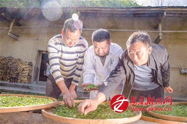 “十四五”期間,我市持續推進茶產業發展,努力實現茶產業“四時有收”。圖為紫陽白茶非遺制作技藝代表性傳承人在高橋鎮裴壩村,向茶農推廣紫陽白茶非遺制作技藝。 李勝璋 攝?