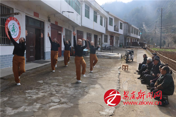 在寧陜縣筒車灣鎮筒車灣社區白果樹組一個小地名叫四塊田的地方,冬日的清晨正被歡快的旋律喚醒,李友發與幾位老人坐在院壩邊看得格外投入。