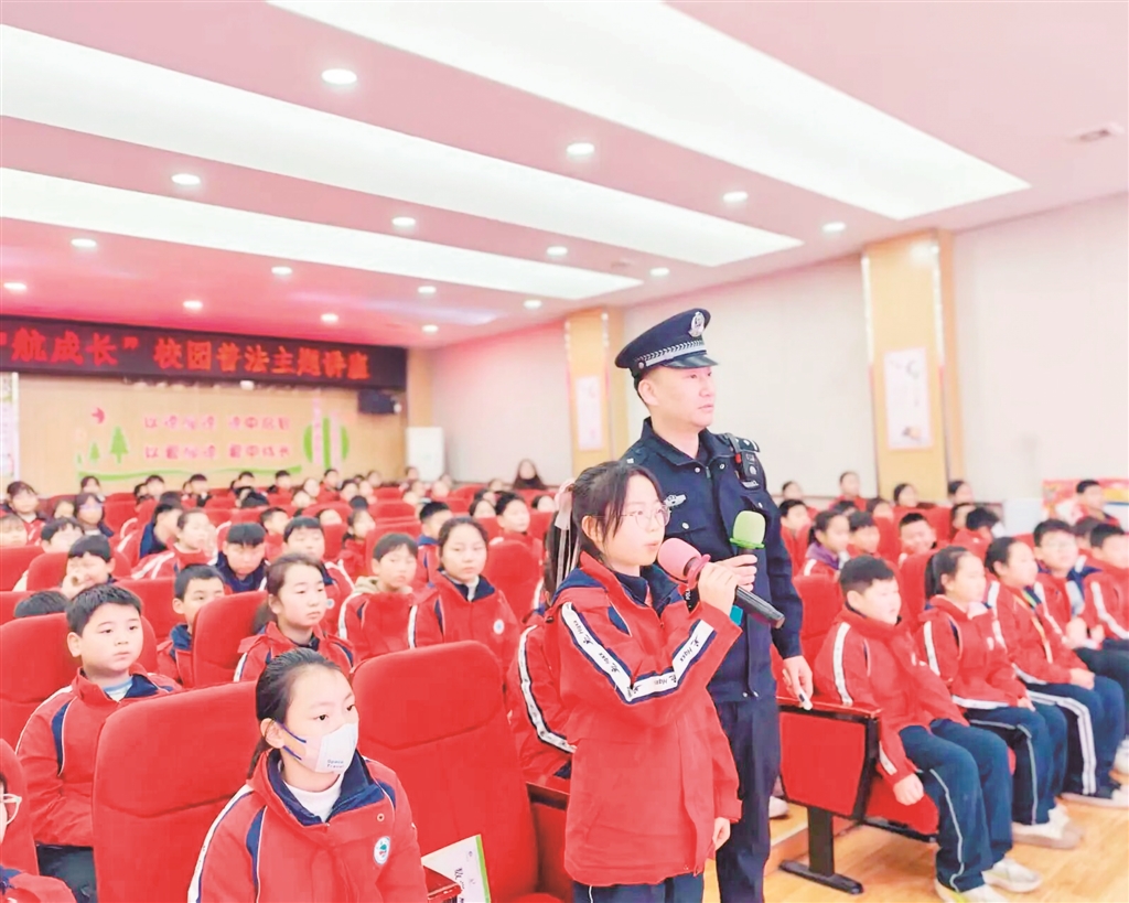 近日,漢濱區紅旗小學組織開展“法潤童心 護航成長”法治宣傳教育講座。學校邀請東城派出所民警與社區工作人員走進校園,為師生帶來了一堂生動實用的法治課。講座中,民警結合真實案例與生活實際,重點解讀了未成年人保護法、校園欺凌防范、電信詐騙識別及日常行為規范等內容。他們通過情景模擬、互動問答等形式,引導學生增強法律意識,學會自我保護,自覺遵守校規校紀。活動有效提升了學生的法治觀念與安全自護能力,為營造文明、和諧、安全的校園環境起到了積極推動作用。(佘小燕/攝)