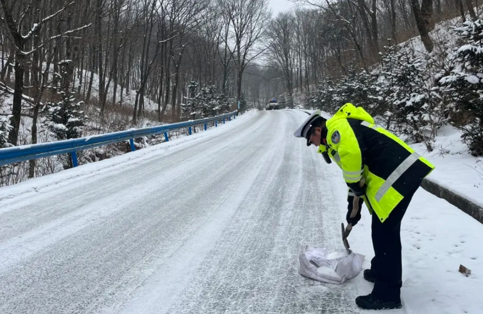 近日,嵐皋縣遭遇強冷空氣侵襲,寒潮攜雪而至,轄區(qū)部分路段出現(xiàn)積雪結冰、路面濕滑現(xiàn)象,為有效應對雨雪惡劣天氣,切實維護社會秩序與群眾出行安全,嵐皋縣公安局迅速啟動應急預案,在易結冰、易擁堵路段,開展破冰除雪、交通指揮疏導、路面巡邏、宣傳提示等工作,織牢道路交通安全網(wǎng),全力守護群眾安全出行。
