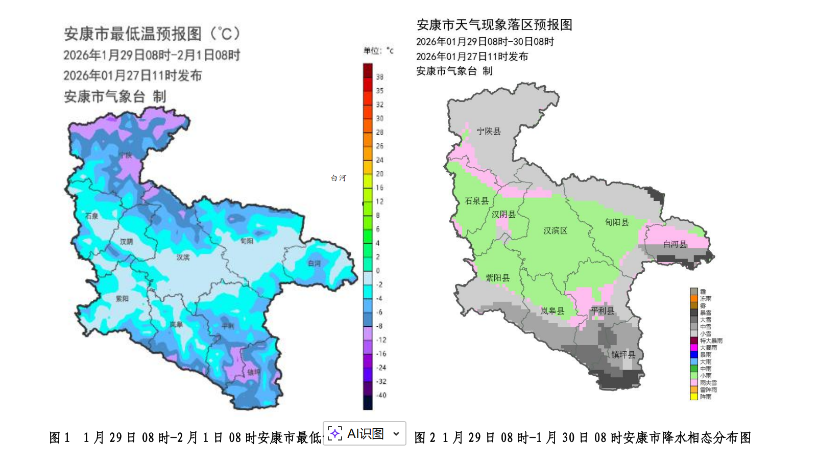 28日夜間至30日氣溫持續走低,過程全市大部平均氣溫下降4~6℃。1月31日雨雪天氣結束,受前期雨雪天氣和冷空氣持續影響,氣溫仍較低,預計最低氣溫將出現在1月31日或2月1日清晨,川道地區-4~-1℃,中高山地區-10~-5℃,局地低于-10℃。過程期間山區局地有5~6級陣風。
