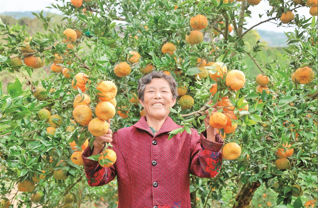 柑橘豐收季,漢濱區張灘鎮田灣社區農戶胡德英捧著金黃的柑橘,臉上洋溢著豐收的喜悅。 張敏 攝