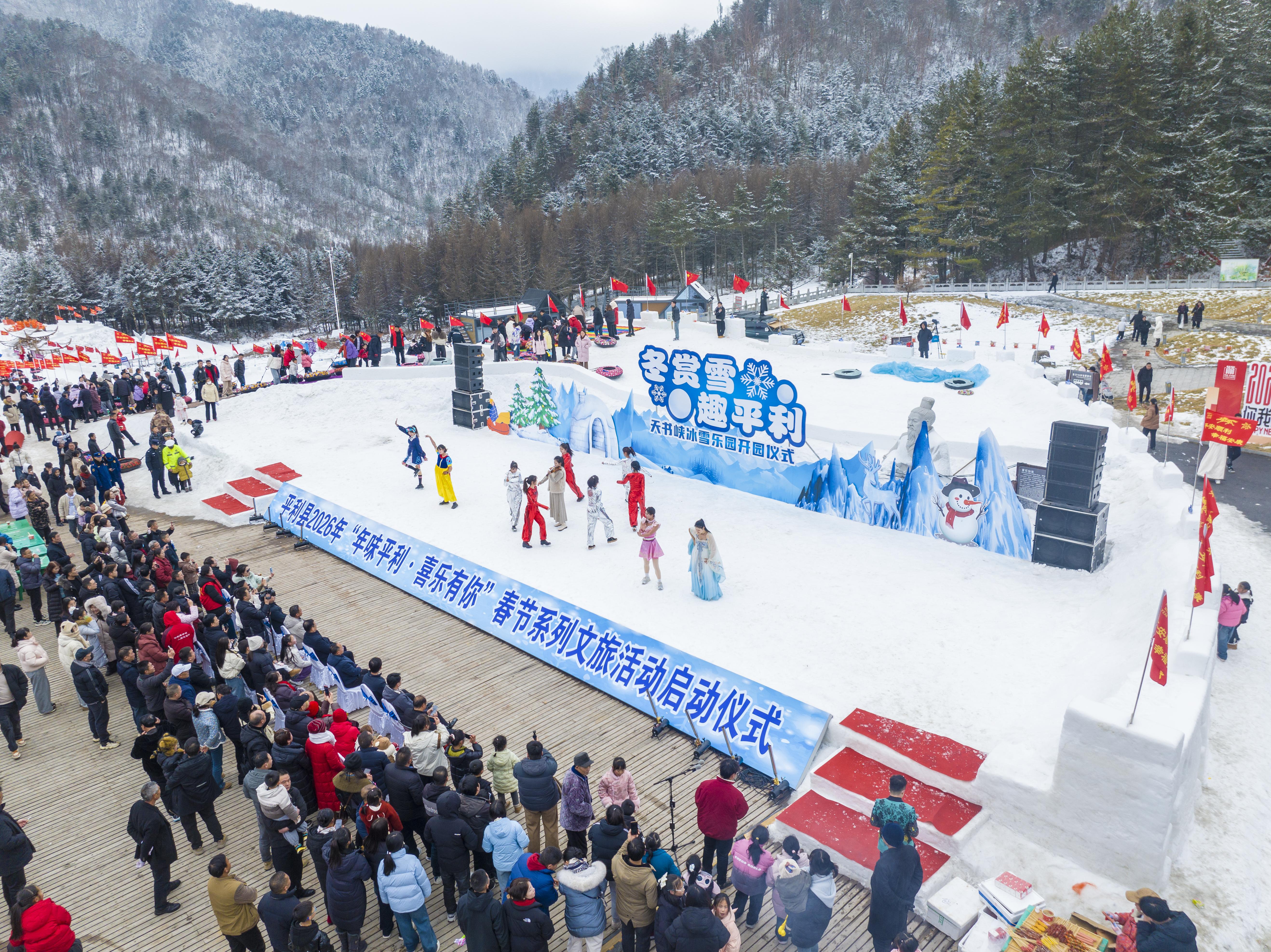 2月1日,“冬賞雪·趣平利”天書峽冰雪樂園暨2026年“年味平利·喜樂有你”春節系列文旅活動啟動儀式在八仙鎮天書峽景區舉辦。開園當日,景區同步開放了冰雪游樂區、美食體驗區與農特產品展銷區。在農特產品展銷區集中展示了高山蜂蜜、手工芝麻糖、八仙臘肉等縣域優質農產品,讓游客在游玩的同時,還能把“平利味道”帶回家。