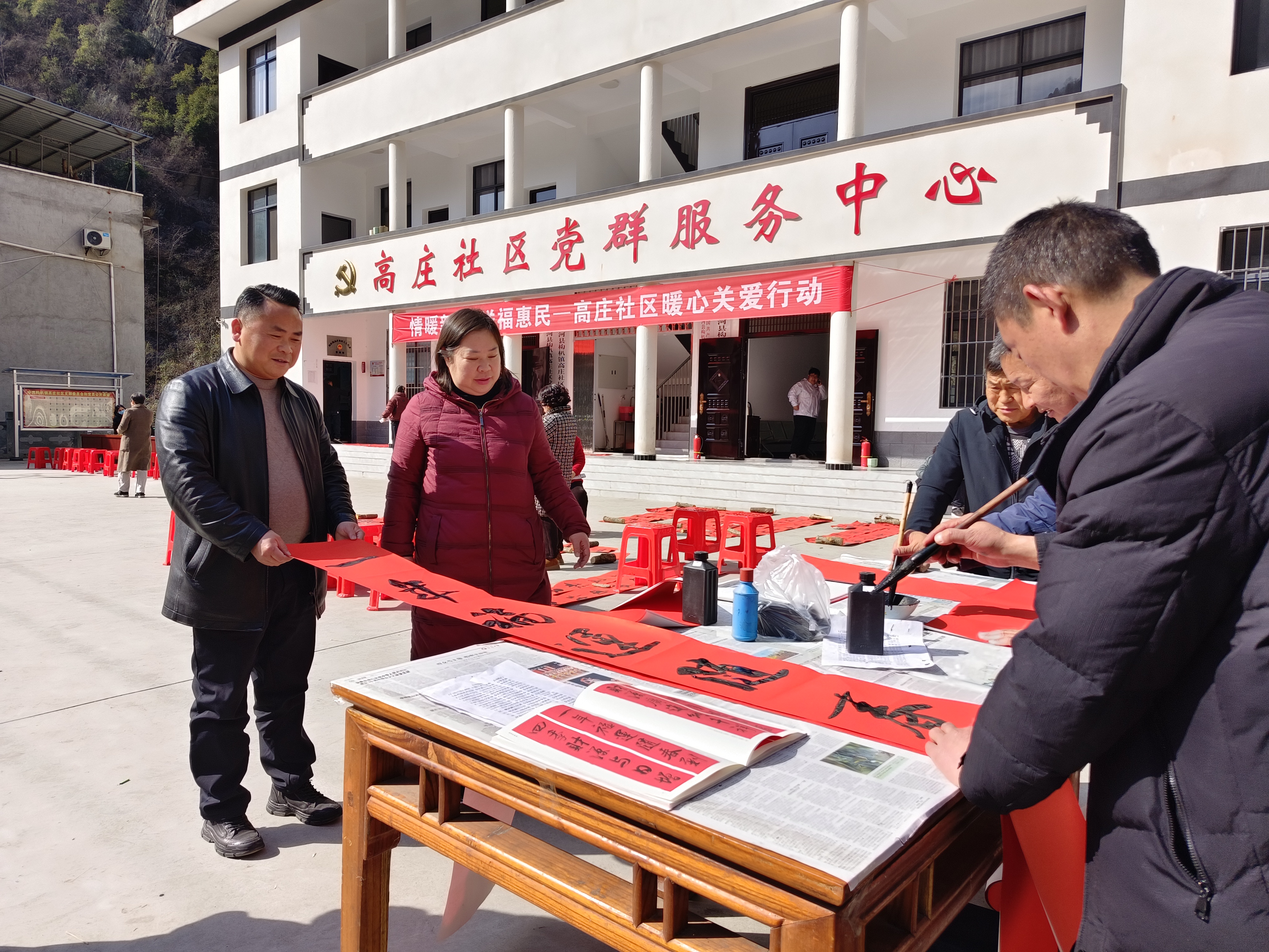 2月5日,白河縣構朳鎮高莊社區聯合包建單位安康市中醫醫院和白河縣文聯開展“情暖新春·送福惠民”活動,現場為群眾義診送健康、義寫春聯送祝福。 黃楠芳 黃秀琴 攝