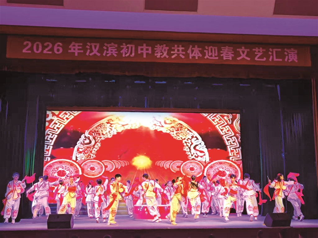 2月4日,漢濱初中教育共同體舉辦“同心筑夢(mèng)傳薪火·和美共生向未來(lái)”迎春文藝匯演。演出分為“薪火相傳”“融合共進(jìn)”“夢(mèng)想綻放”三大篇章,通過舞蹈、朗誦、非遺展示、音樂快板等豐富形式,生動(dòng)展現(xiàn)了教育的初心使命與育人成果。 朱合玲 攝